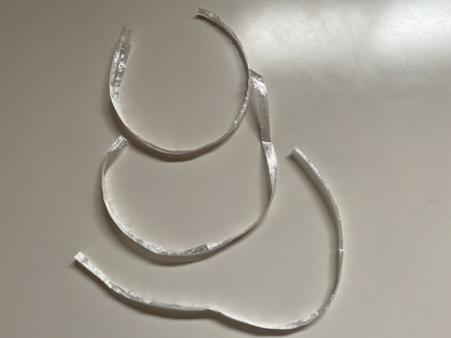 ビニールひもを30cmほどにカットします。人数や設置スペースに合わせて本数を調整してください。