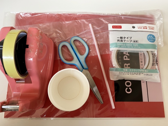 ストローを内側から通し、外側からセロハンテープで補強します。