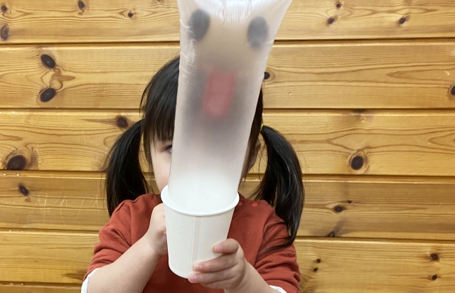 空気を入れると“ぽんっ!”とふくらんで出てくる様子に、子どもたちは大喜び!